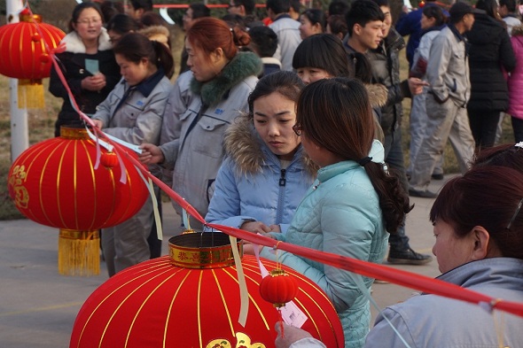為弘揚民族文化,讓職工們體驗元宵節(jié)猜燈謎的傳統(tǒng)習俗,豐富企業(yè)文化生活,營造喜慶、祥和的節(jié)日氛圍,公司于2015年3月3日(正月十四)下午舉辦了河南萬杰第四屆“慶元宵、猜燈謎”活動。本次活動由公司行政部、總經(jīng)辦聯(lián)合舉辦,并得到了各部門職工的大力支持。 本次“猜燈謎”活動,謎面科學而通俗,其中涵蓋著字謎、成語、腦筋急轉(zhuǎn)彎及公司戰(zhàn)略規(guī)劃問答等內(nèi)容,生動而活潑,面廣而量大。 下午16:30,萬杰全體家人準時來到操場,在行政部經(jīng)理劉志軍對本次“慶元宵 猜燈謎”的活動規(guī)則進行說明后,河南萬杰第四屆“慶元宵 猜燈謎”活動正式開始。 zui為吸引職工眼球的是公司操場內(nèi)一排排的紅燈籠及燈籠上貼著燈謎的各色紙條。微風吹來,謎面隨風起舞,職工們穿梭其間,流連忘返。謎面前,一雙雙欣喜而激動的眼睛閃爍著智慧的光芒。大家積極參與,三三兩兩聚在謎題下細心斟酌、認真思索,現(xiàn)場不時傳出猜中謎底后欣喜的歡呼聲,場面熱鬧非凡,處處洋溢著濃濃的文化氣息。有的同事在燈謎前冥思苦想,也有同事想到答案豁然開朗的,還有些同事因久久想不到答案而聚集在一起共同探討……,盡管今年燈謎的難度較往年大得多,但仍擋不住大家積極開動腦筋的激情與智慧,zui終通過大家的努力絕大部分燈謎都被猜中。職工們猜到燈謎時的興奮與領獎時的喜悅,把活動的氣氛推向高潮。 zui后,計分員根據(jù)猜中謎底的數(shù)量統(tǒng)計出前十名人員,公司領導分別為每位獲獎人員贈送了一對大紅燈籠,給首個猜出答案的人和猜出總數(shù)zui高的家人獎勵萬杰紀念茶杯一個,活動在歡聲笑語中結束! 在職工的內(nèi)心深處,公司每年舉行“鬧元宵,猜燈謎”活動儼然成為了萬杰的習俗之一。每當元宵前夕,大家都期盼著這項熱熱鬧鬧的活動,因為她帶給我們的不僅僅是獎品,還有歡聲笑語。小小的燈謎讓大家之間的距離變得更近了,小小的燈謎讓萬杰“以人為本,人以孝為根”的企業(yè)文化深入人心。 “慶元宵