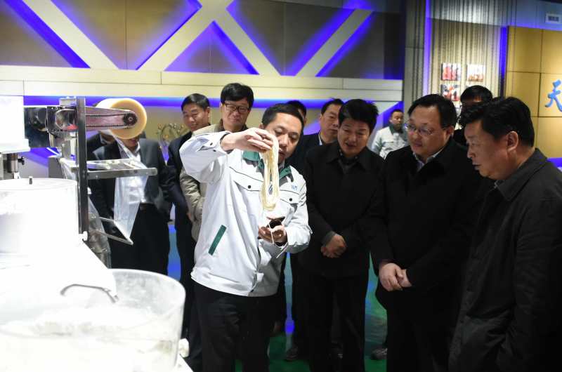 許昌市統(tǒng)戰(zhàn)部部長劉保新與襄城縣縣長李成一行在董事長王曉杰陪同下參觀公司展廳,詳細了解了公司的產(chǎn)品機構(gòu)和企業(yè)文化,特別是在公司展廳了解到高端制面機項目的總體規(guī)劃和發(fā)展成績后對萬杰智能的發(fā)展表示高度贊揚